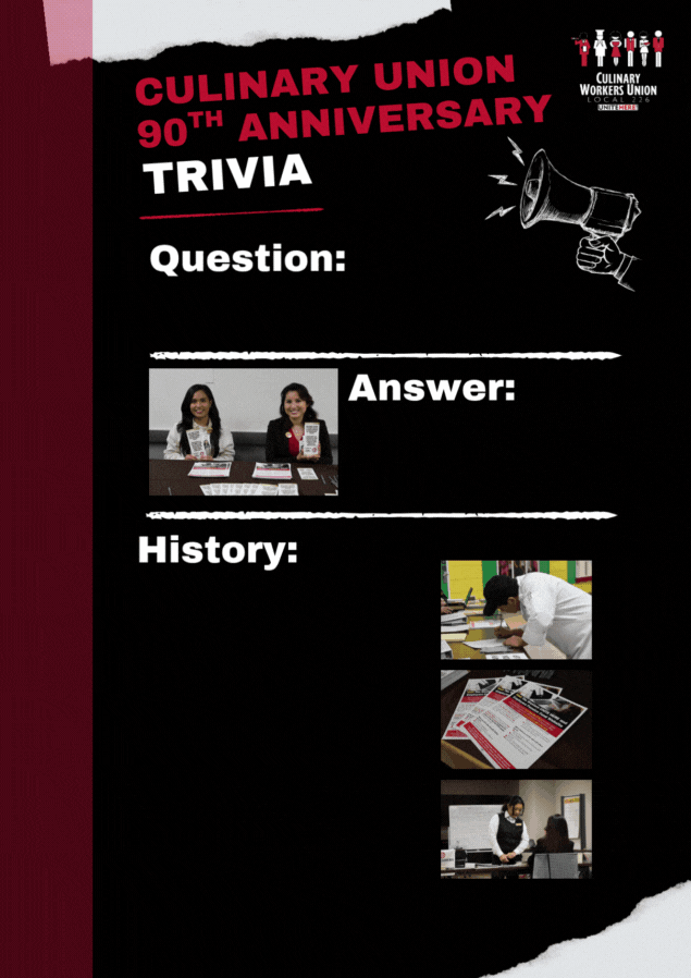 Play our trivia each week on social media to learn more about the Culinary Union's history of fighting & winning a better life for hospitality workers.