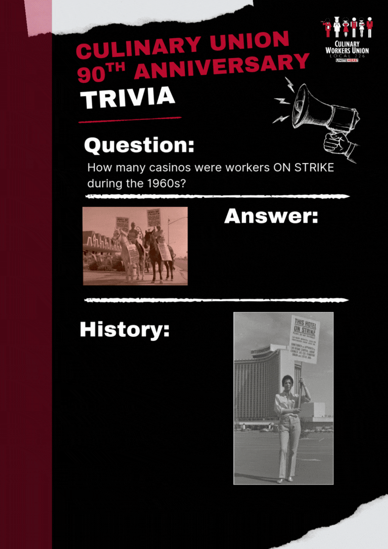 Play our trivia each week on social media to learn more about the Culinary Union's history of fighting & winning a better life for hospitality workers.