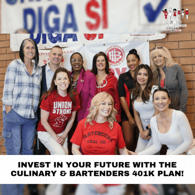 In addition to your Union pension, you can also sign up for a 401(k) with the Culinary & Bartenders 401k Plan!
